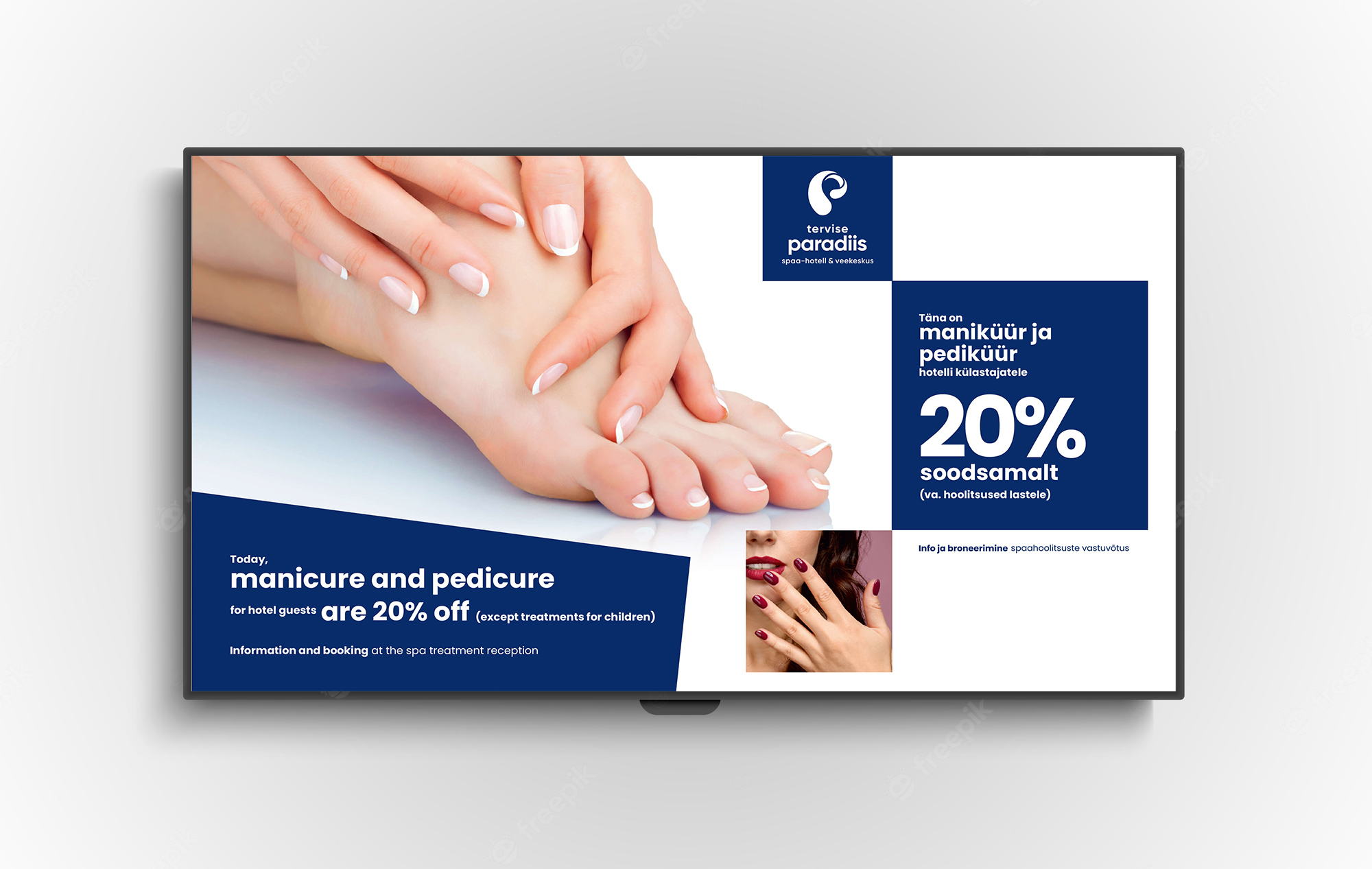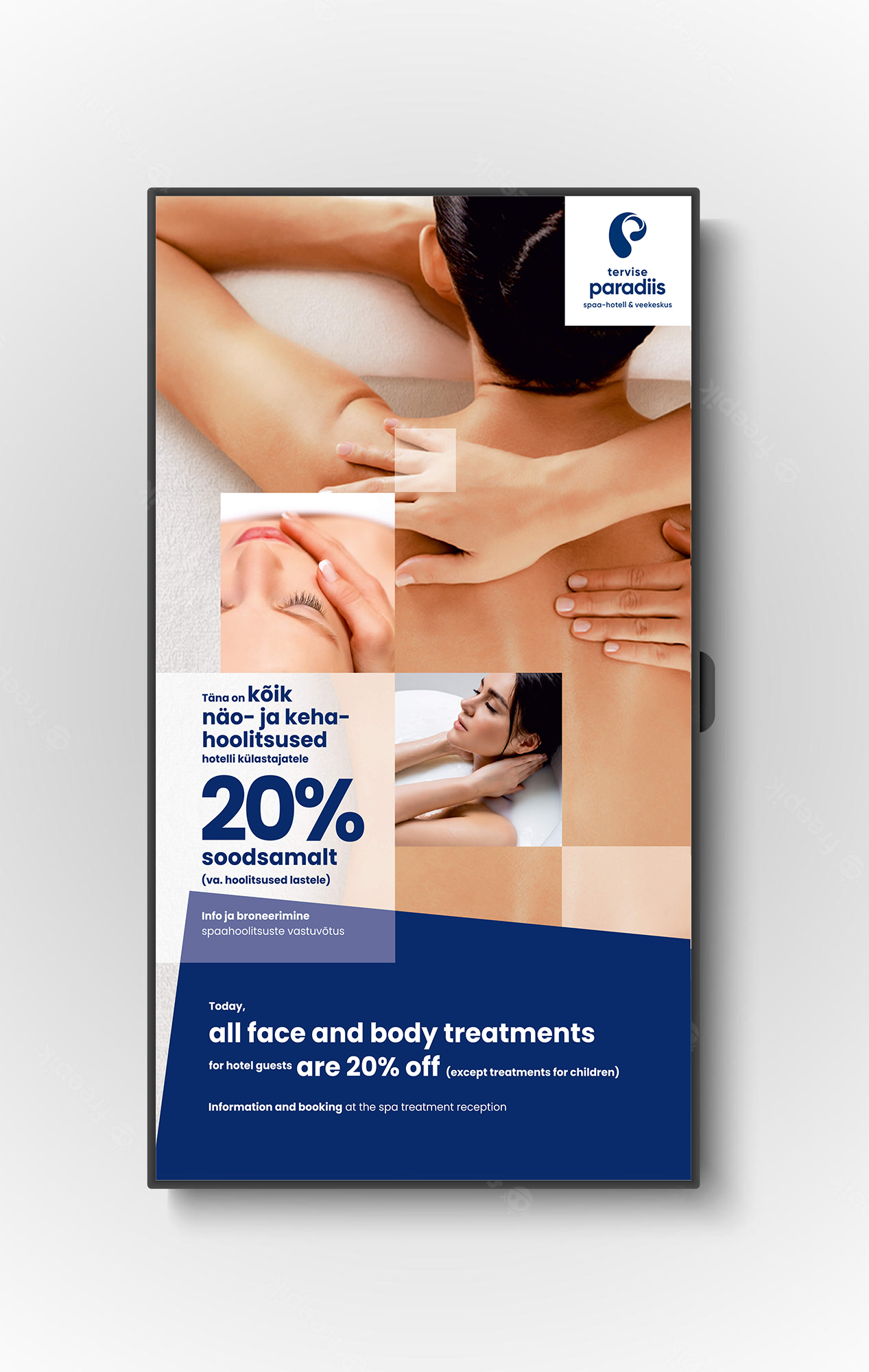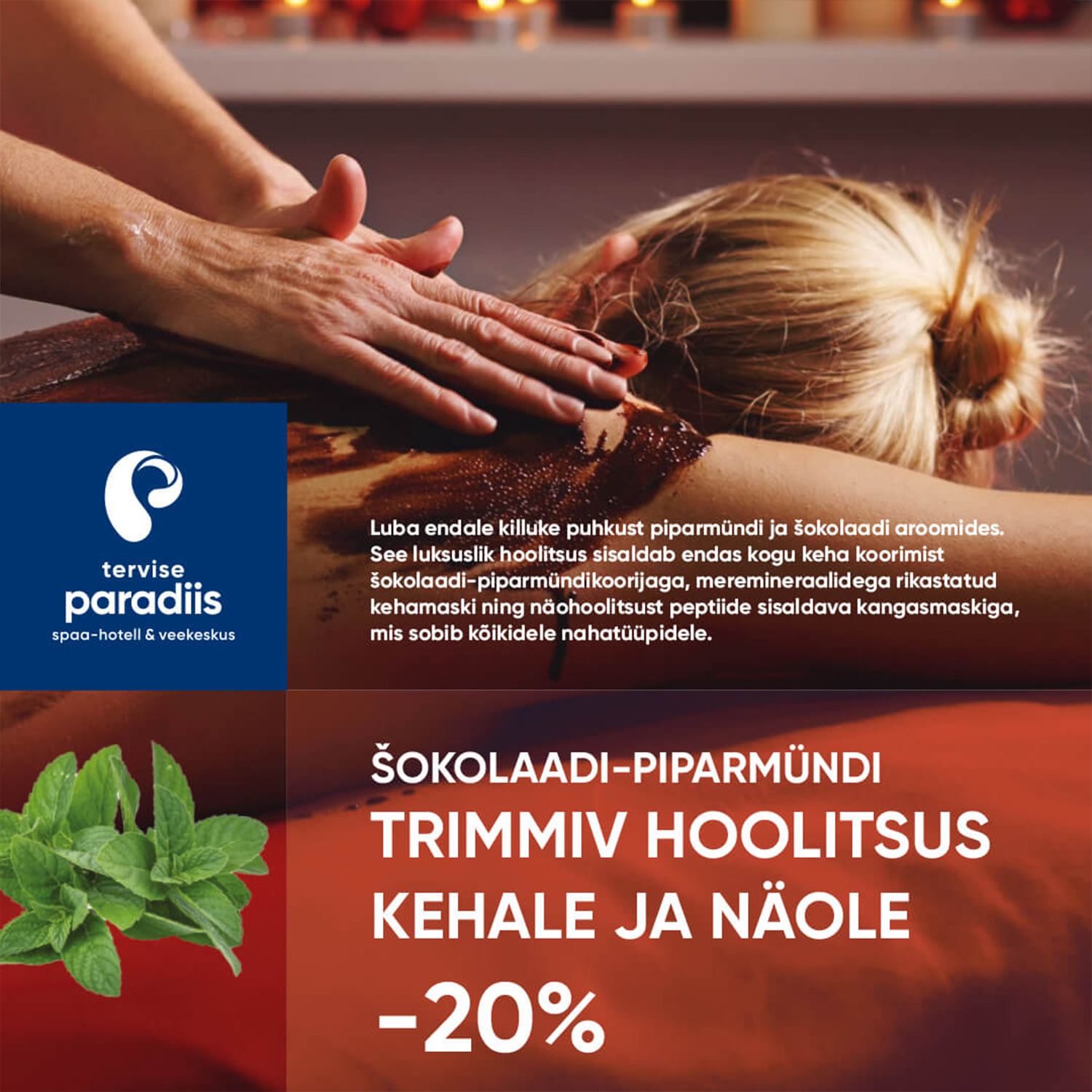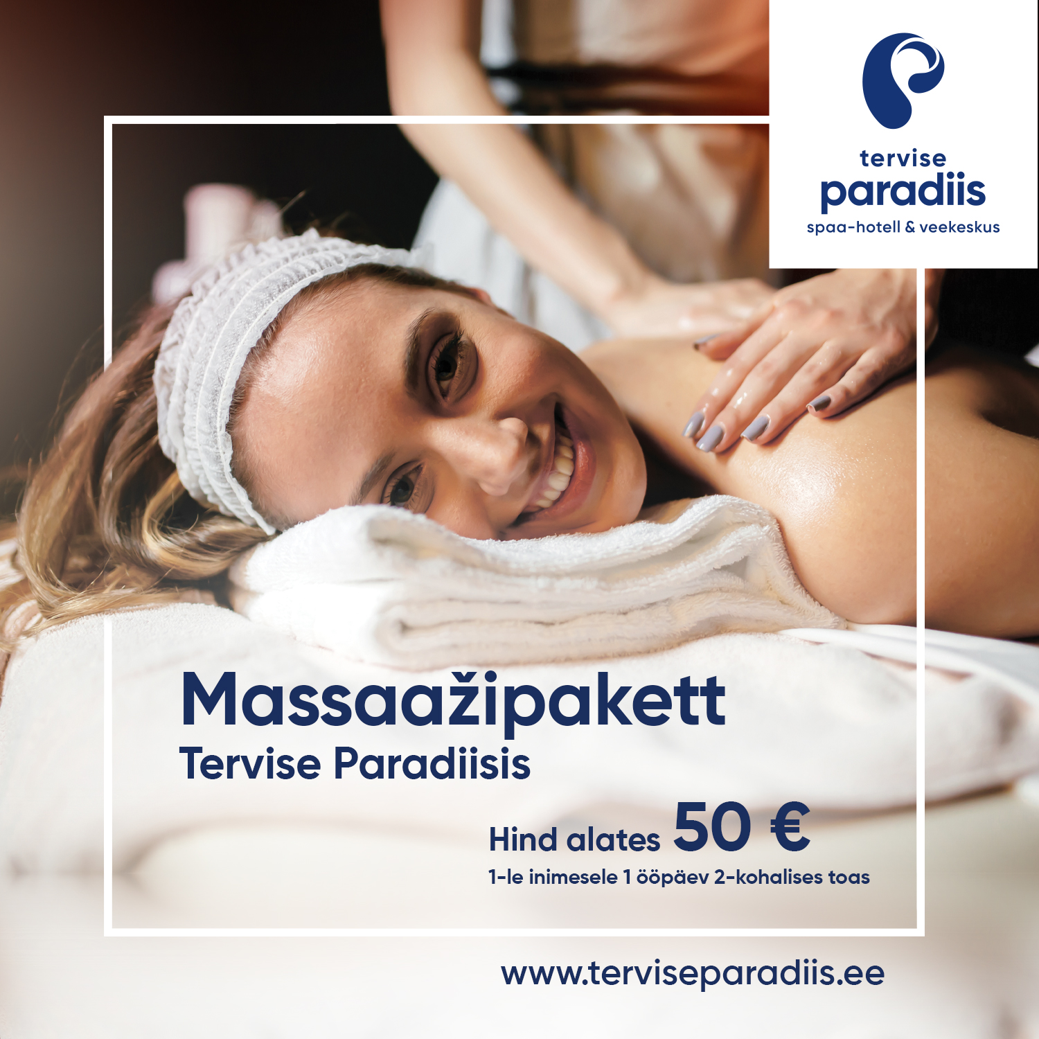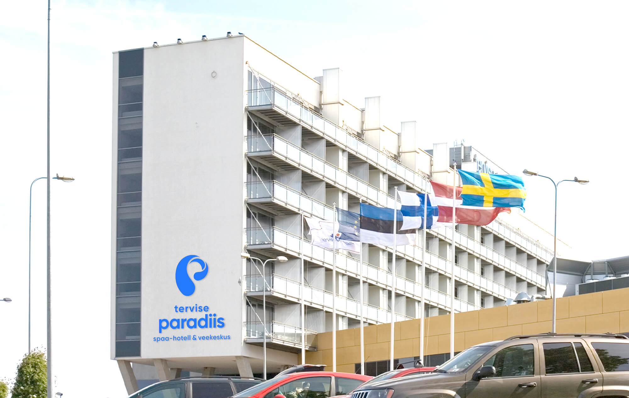 Tekstiblokk koosneb kahel real väikeste tähtedega kirjutatud nimest 'tervise paradiis' ja selle all eraldi real kirjeldav tekst 'spaa-hotell & veekeskus' (või selle tõlge).