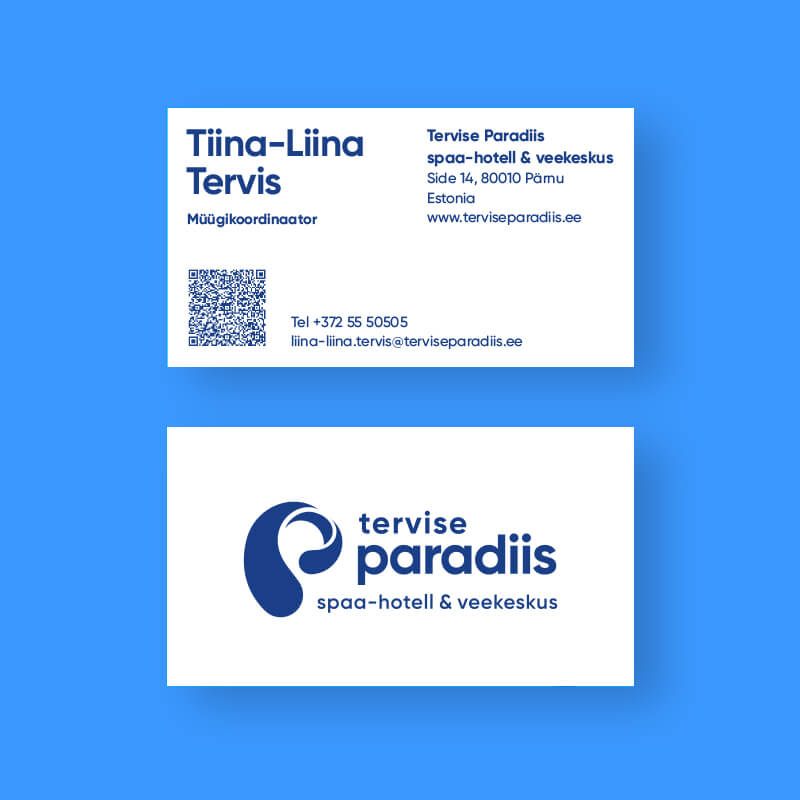 Tervise Paradiisi korporatiivseid põhivärve on 2 - paradiisi sinine ja paradiisi öösinine. Põhivärvide peamiseks kaaslaseks on kontrastsust ja selgust rõhutav valge või pehmust lisav paradiisi liivakollane.